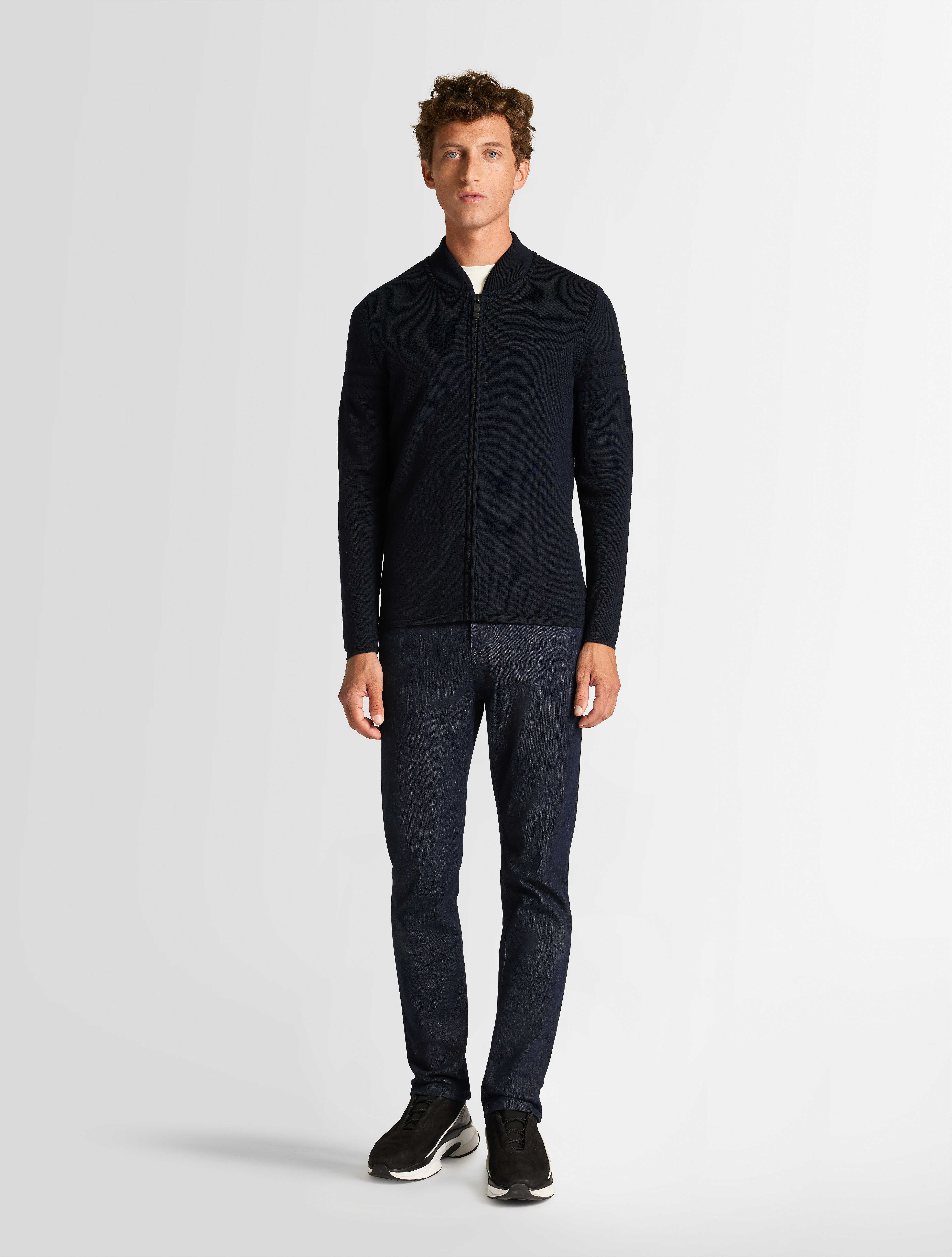 Beschreibung: Der Bastien-Cardigan Ist Aus Hochwertiger Italienischer Wolle Gefertigt. Der Stil Wurde Als Variation Des Damien-Pullovers Aktualisiert Und Verfügt Über Einen Baseballkragen Und Eine Steppung Am Arm. Die Strickjacke Mit Reißverschluss Kann Mit Einem T-Shirt Oder Poloshirt Kombiniert Werden, Um Einen Eleganten Und Dennoch Lässigen Look Zu Erzielen.